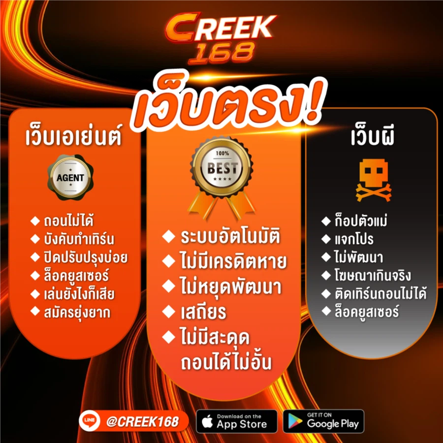 CREEK168 เว็บพนันออนไลน์ระดับพรีเมียมที่เปิดให้บริการอย่างครบวงจร นำเสนอประสบการณ์การเดิมพันที่หลากหลายตั้งแต่คาสิโนสด สล็อต กีฬา และเกมส์พนันรูปแบบต่างๆ ด้วยระบบที่ทันสมัย รองรับการใช้งานทั้งบนคอมพิวเตอร์และมือถือ พร้อมระบบฝาก-ถอนอัตโนมัติที่รวดเร็วตลอด 24 ชั่วโมง การันตีด้วยมาตรฐานระดับสากลและใบอนุญาตการเล่นพนันที่ถูกกฎหมาย มอบความปลอดภัยสูงสุดให้กับสมาชิก พร้อมโปรโมชั่นและสิทธิพิเศษมากมายที่จัดเตรียมไว้ต้อนรับนักพนันทุกระดับ ตอบโจทย์ความต้องการของผู้เล่นที่ต้องการความสะดวกสบายและความคุ้มค่าในการเดิมพัน