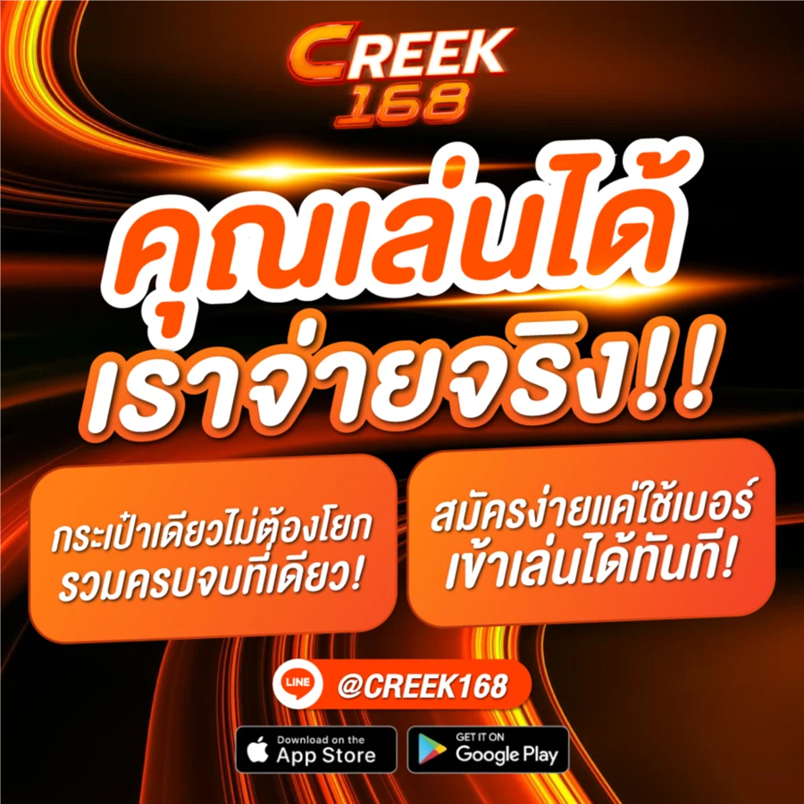 อย่ารอช้า! มาร่วมเป็นส่วนหนึ่งกับครอบครัว CREEK168 วันนี้ รับโบนัสต้อนรับ 100% พร้อมสิทธิประโยชน์อีกมากมาย เราพร้อมมอบประสบการณ์การเดิมพันที่ดีที่สุดให้กับคุณ ด้วยความมั่นคง ปลอดภัย และความบันเทิงที่ไม่มีที่สิ้นสุด